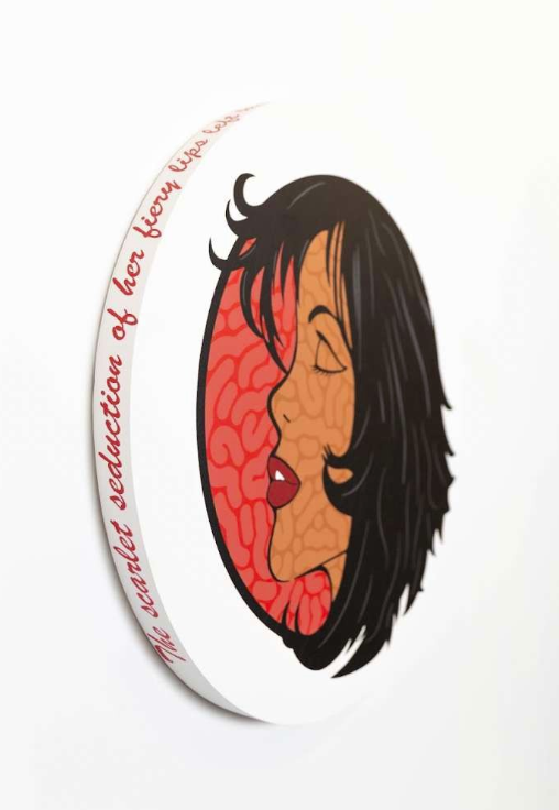 Lefty Out There, (American), is famed for his ubiquitous paintings, which exhibit intricate neural structures and hypnotic visual vibrations. His artistic allure is showcased through opulent finishes in diamond dust, custom asymmetrical framing and interesting choices of canvas, including Birch Wood, Porsches and Glass.