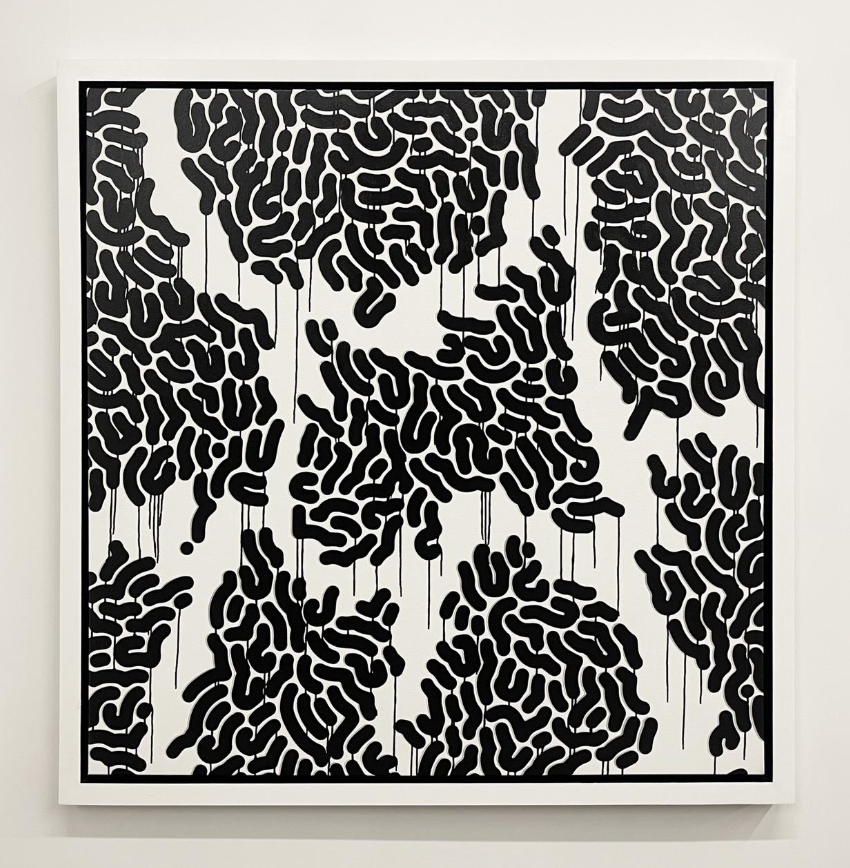 The Artist has collaborated with iconic brands such as Formula One, Soho House and Chopard. His musicianship as a pianist has led to a subsequent affinity for monochrome and pattern. His signature artistry has led to collaborations with musicians like Bad Bunny and Rolling Loud Festival.