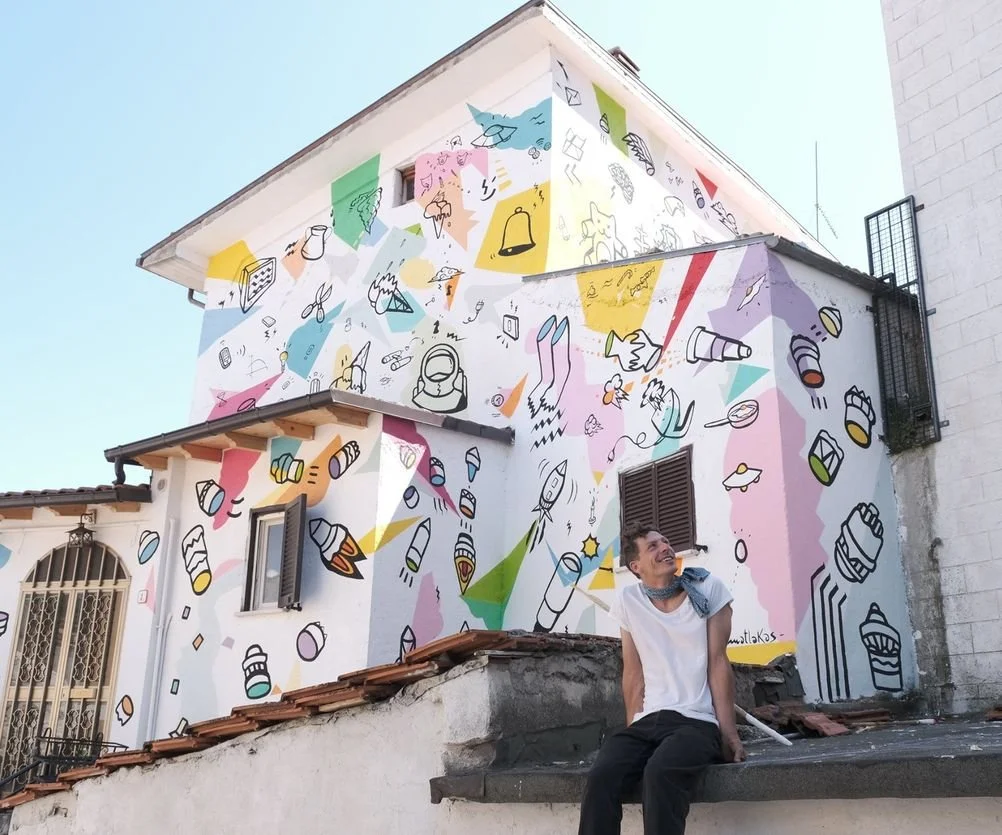 MATLAKAS, (Italian), is a multidisciplinary artist based in London. His art spans various mediums, from paintings to performance art, street murals, and sculpture. The topics of his paintings blur the lines between inner harmony and chaos. His use of bold colour and explosive scenes are both original and unique, bringing a wave of optimism and humor to contemporary art.