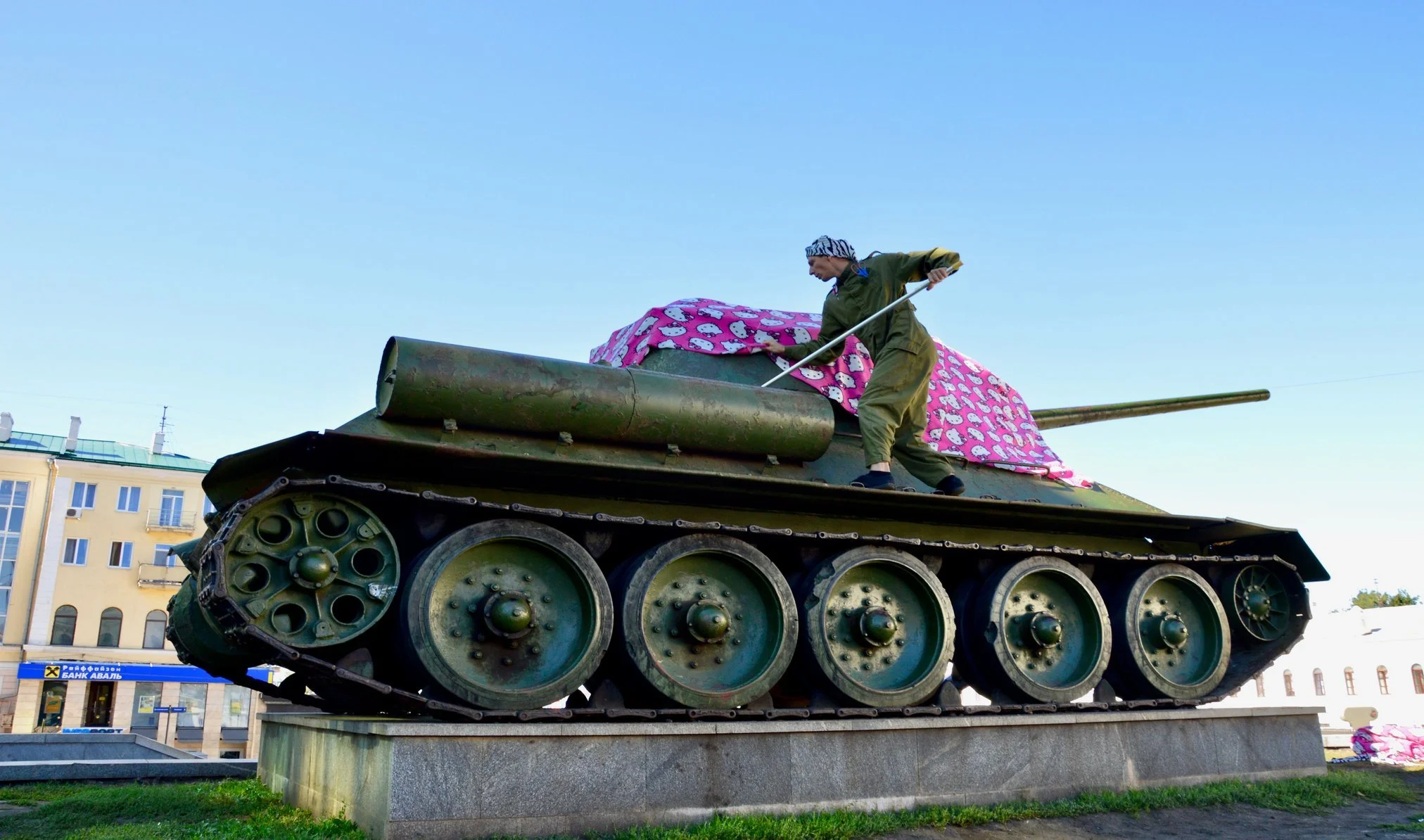His eccentric performance pieces are often intertwined with his paintings. From dressing a military tank in Hello Kitty Pyjamas in Ukraine and making national news to walking the streets of Manhattan with melting ice creams on his face MATLAKAS’ projects have gone viral. The artist most recently caught the eye of Netflix HQ where he was commissioned to paint a mural.